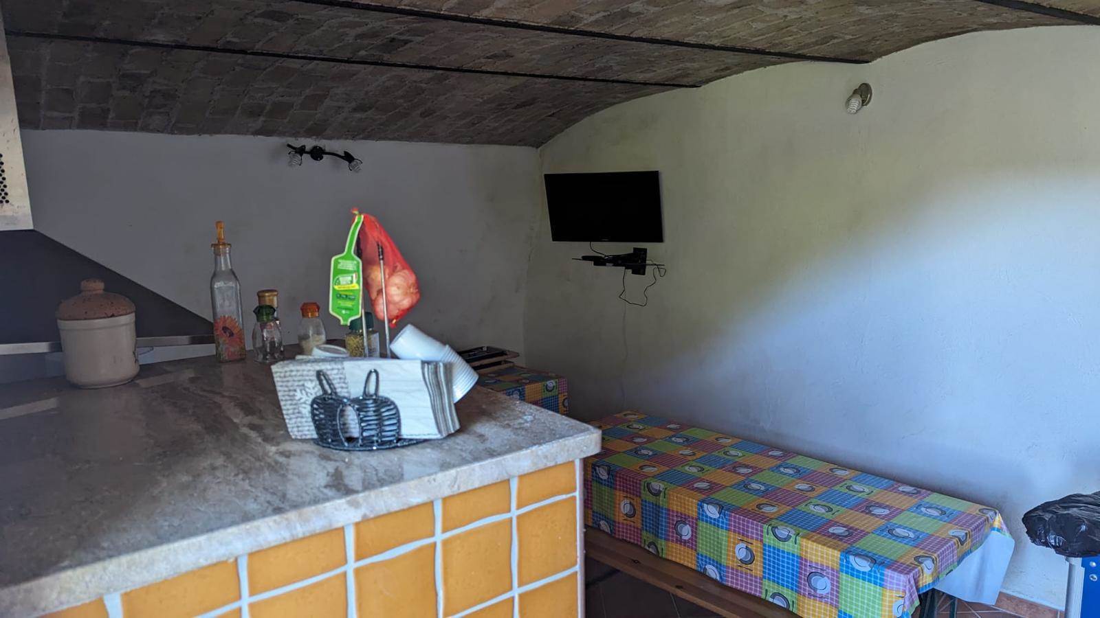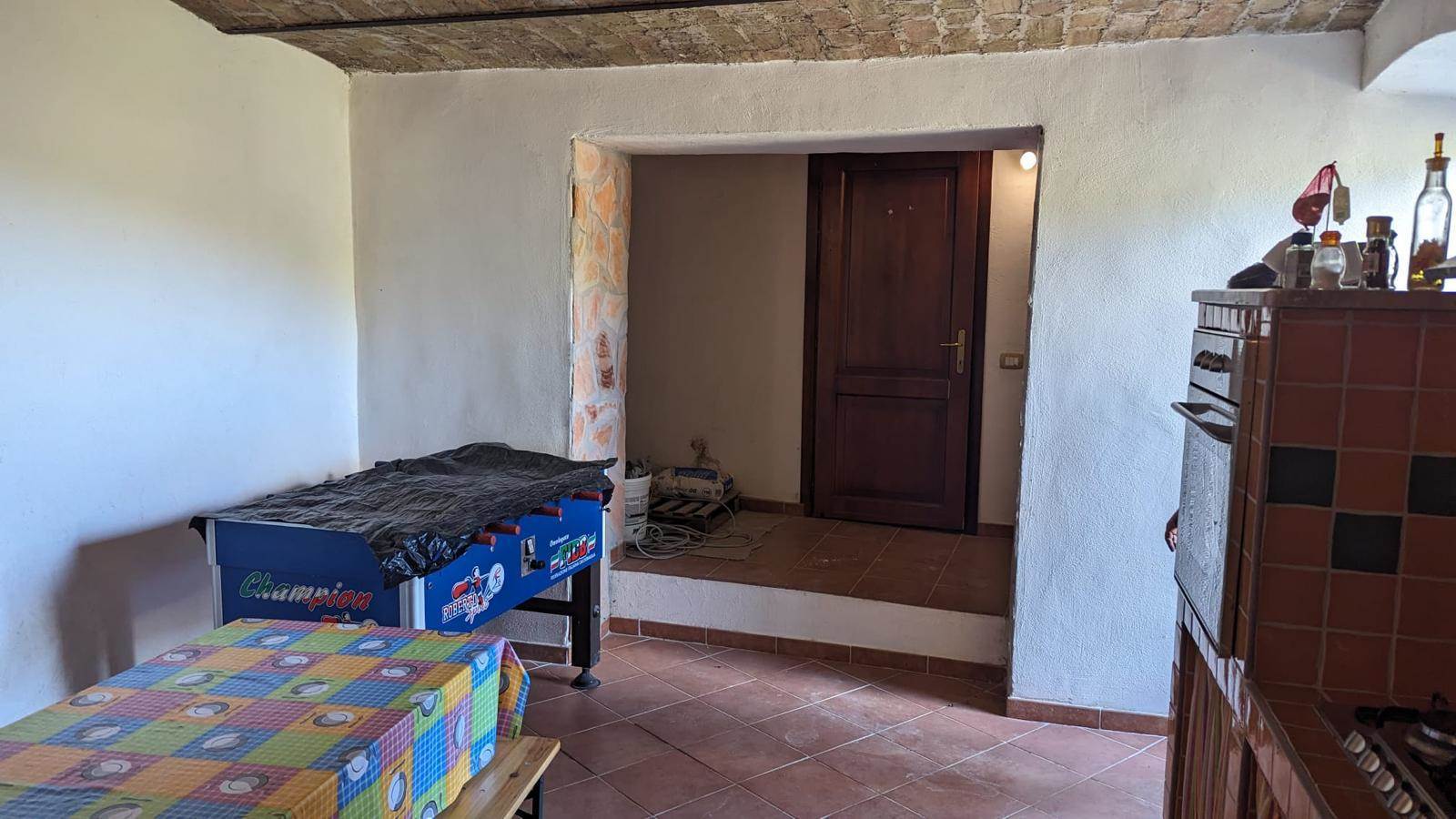 Il villino è disposto su livelli con 2 camere, 1 bagno, cucina, salone con camino e stufa a pellet.