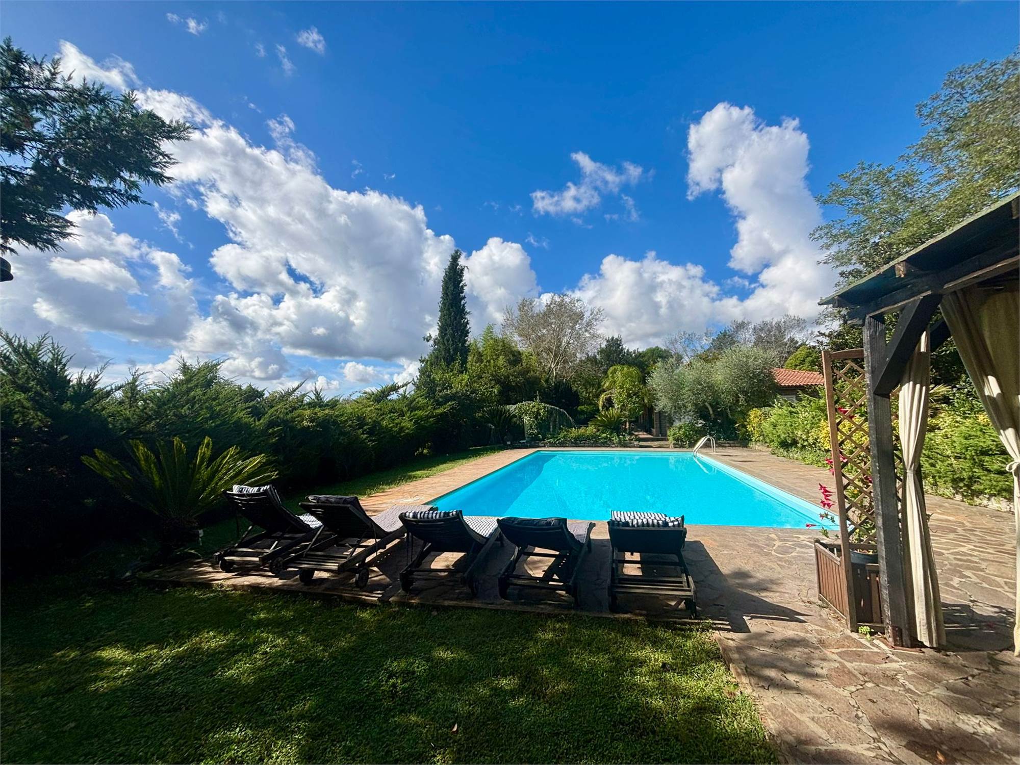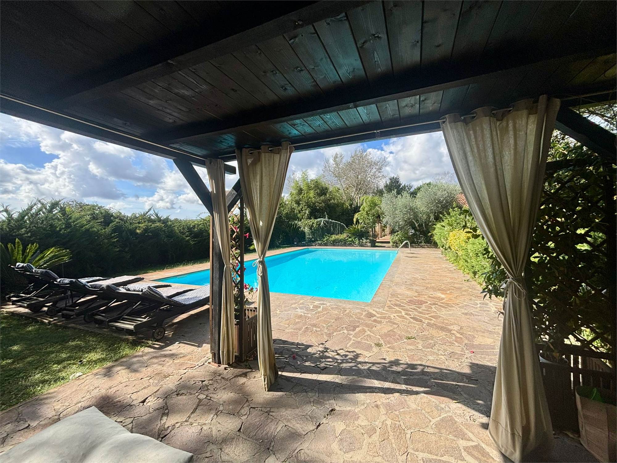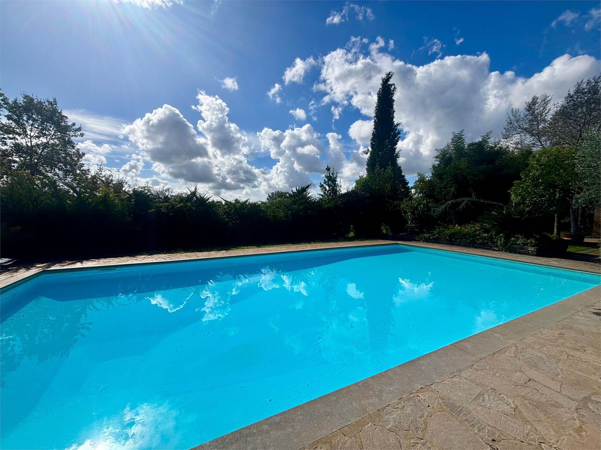 La proprietà è circondata da un vasto terreno di 2 ettari, un vero polmone verde che garantisce assoluta riservatezza. Il fiore all'occhiello è la grande piscina privata, ideale per godersi le calde giornate estive e organizzare indimenticabili momenti conviviali. Un giardino curato che offre infinite possibilità per il tempo libero, l'orto o l'allevamento amatoriale, inoltre è dotata di 10 Kw di pannelli solari.