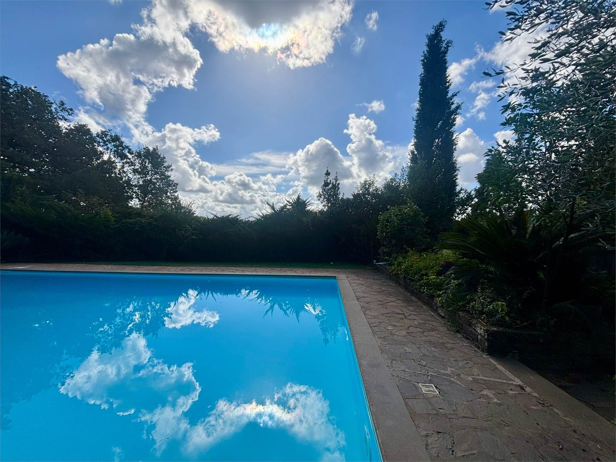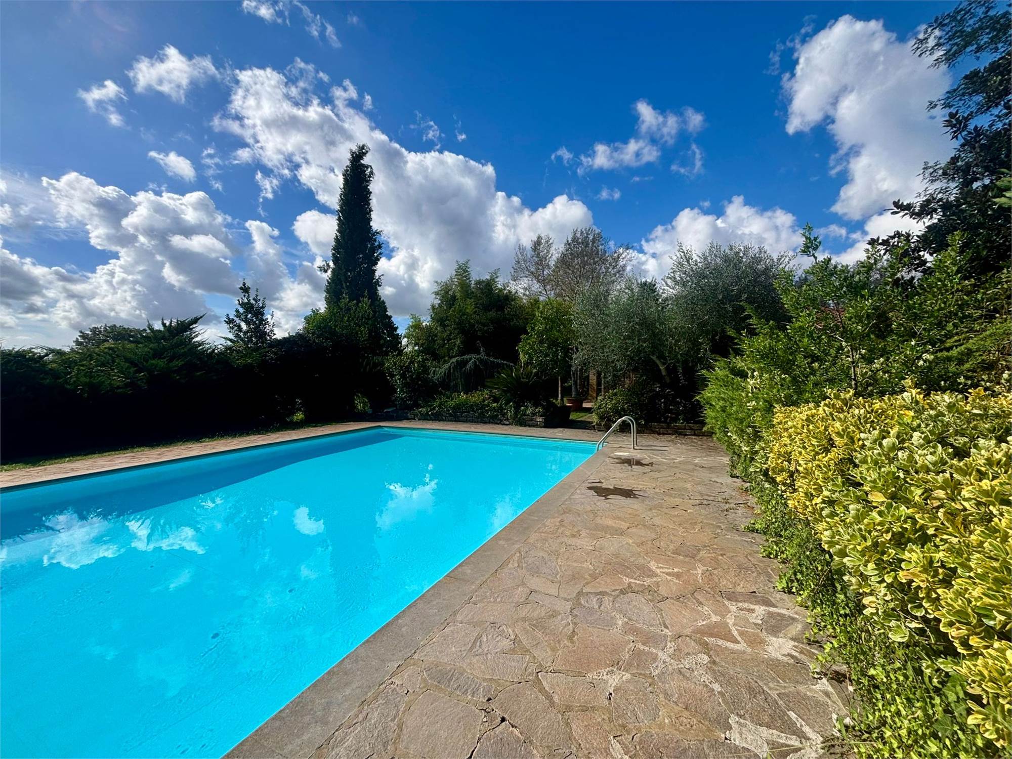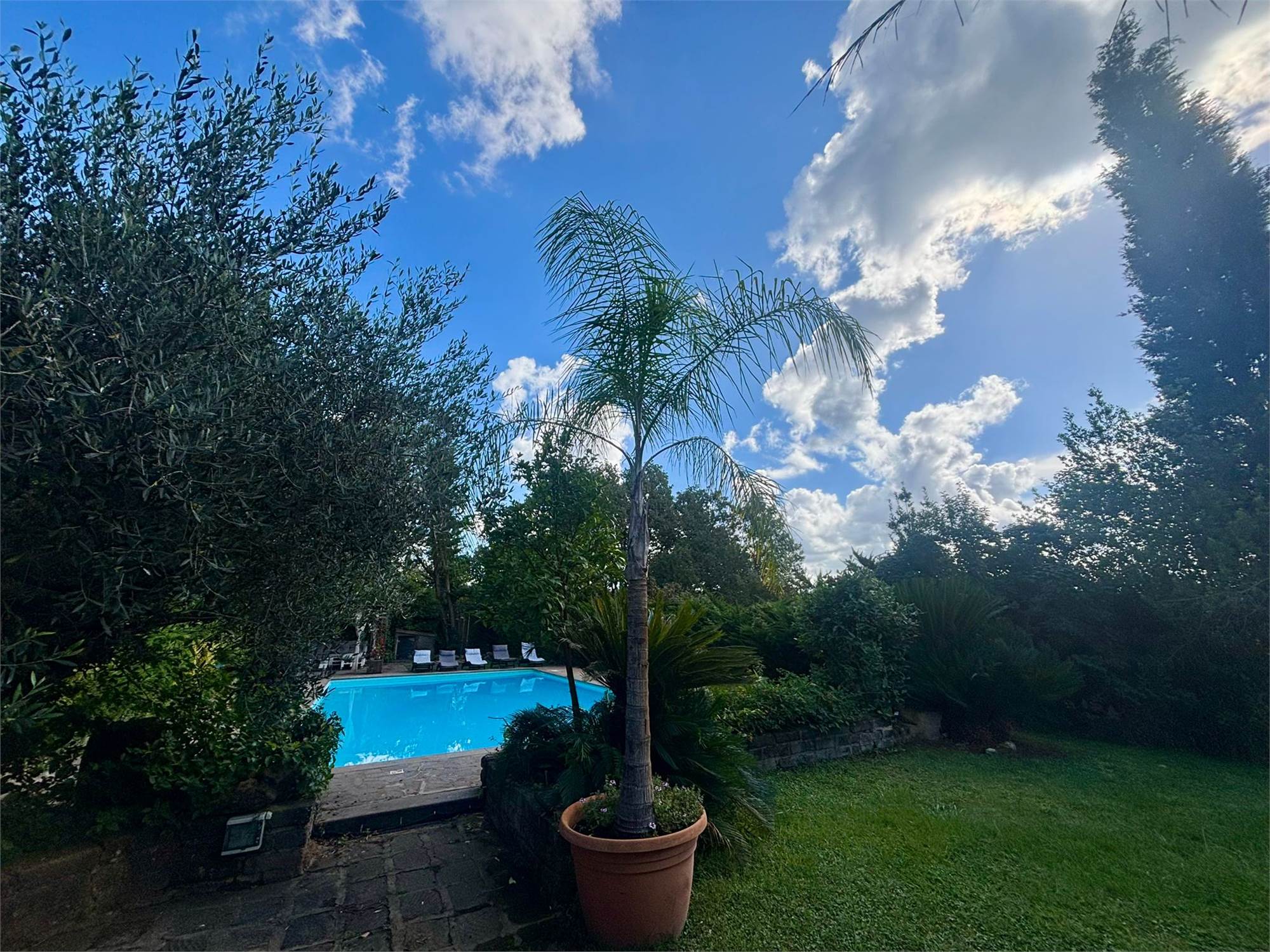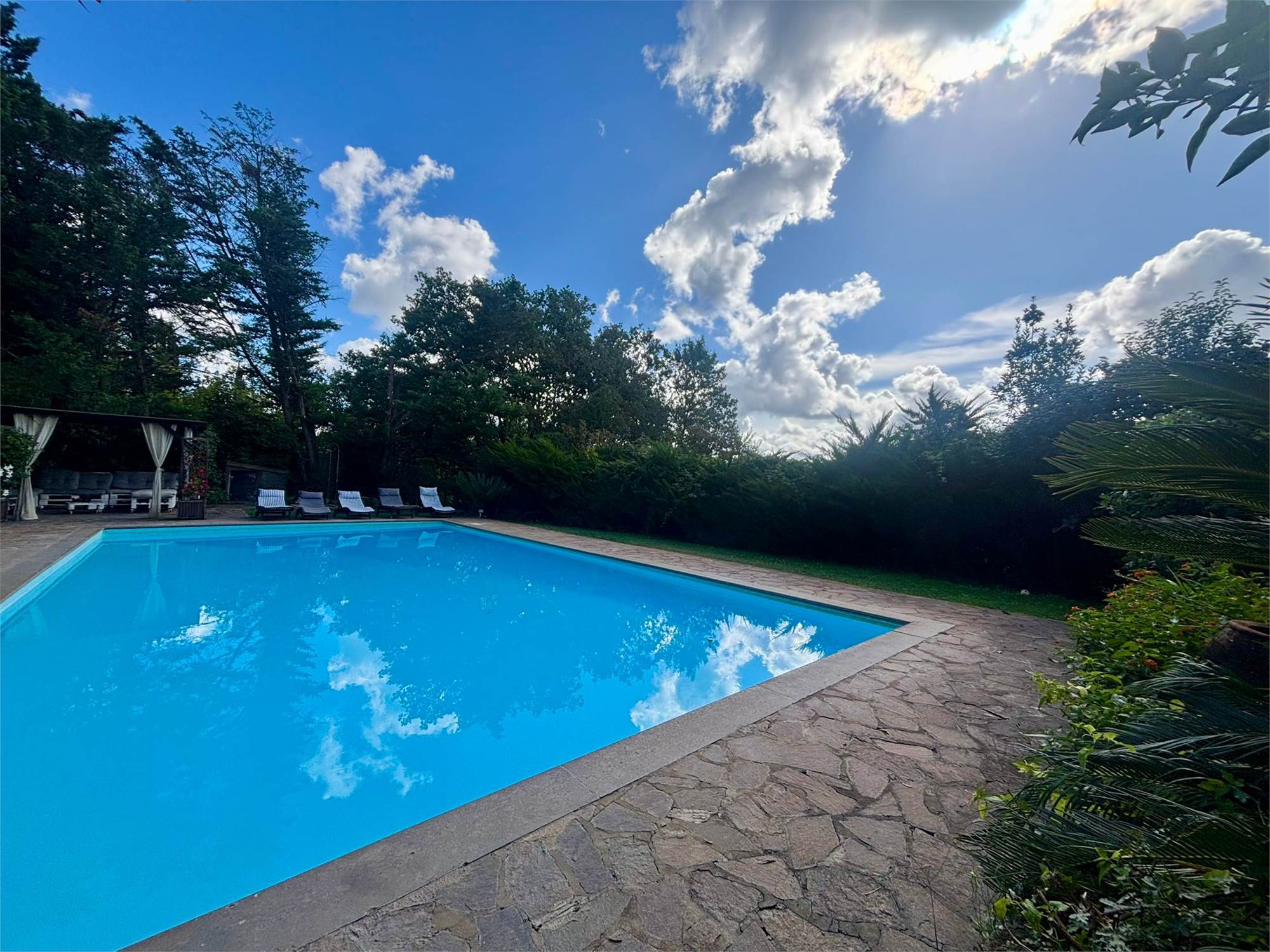 La proprietà è circondata da un vasto terreno di 2 ettari, un vero polmone verde che garantisce assoluta riservatezza. Il fiore all'occhiello è la grande piscina privata, ideale per godersi le calde giornate estive e organizzare indimenticabili momenti conviviali. Un giardino curato che offre infinite possibilità per il tempo libero, l'orto o l'allevamento amatoriale, inoltre è dotata di 10 Kw di pannelli solari.