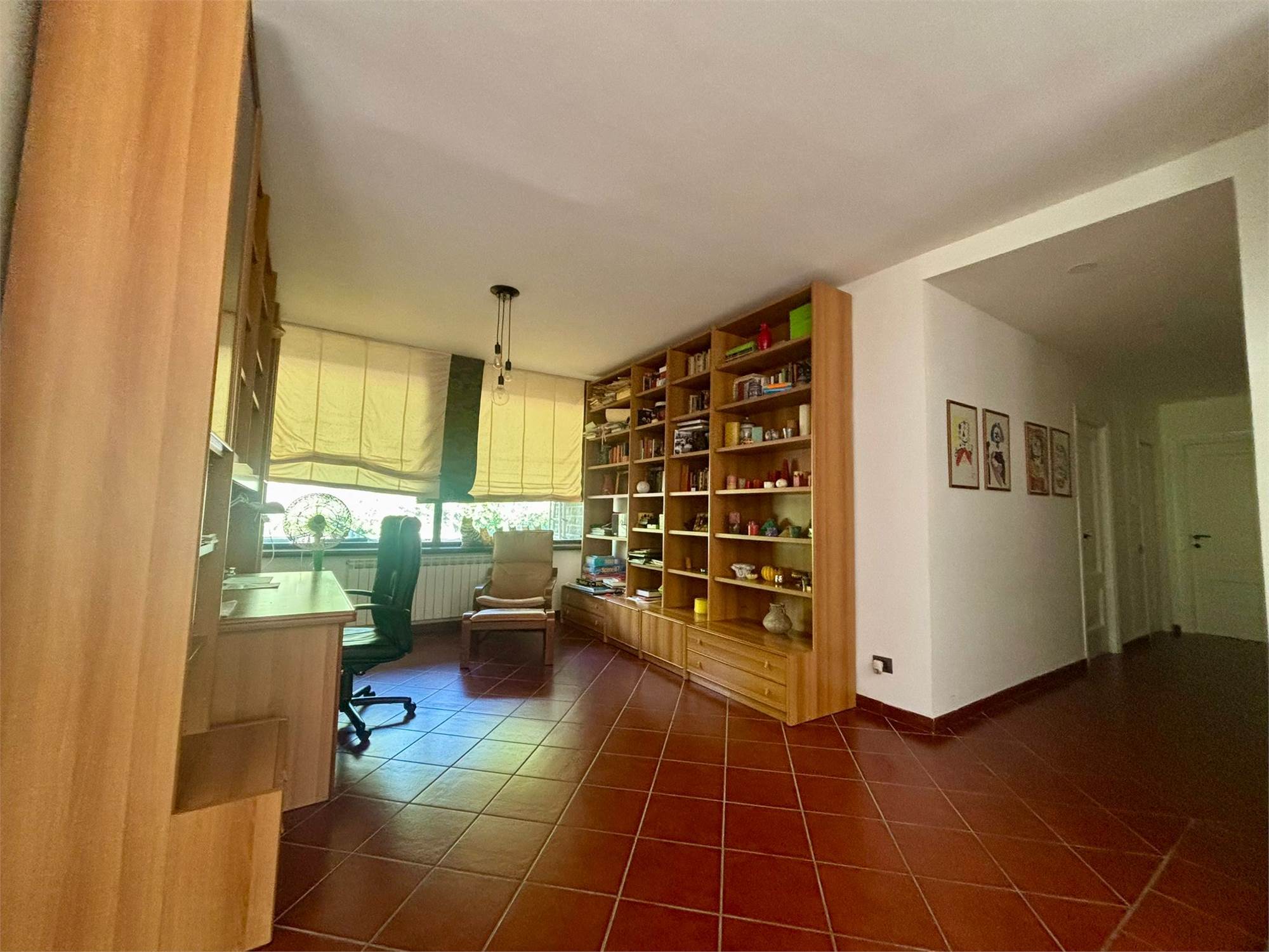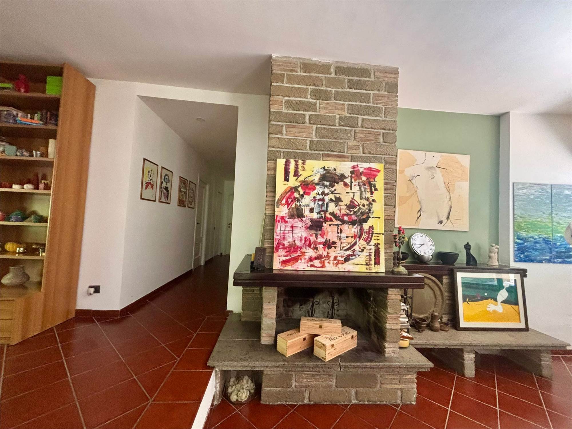* Zona Giorno: L'ingresso si apre su un grande e luminoso soggiorno dominato da un suggestivo camino, il cuore della casa, perfetto per le serate invernali. Il soggiorno include un elegante studio a vista, ideale per chi lavora da casa. La cucina è abitabile e ben attrezzata, completata da una pratica zona lavanderia, un ripostiglio e una dispensa, elementi essenziali per la vita quotidiana.