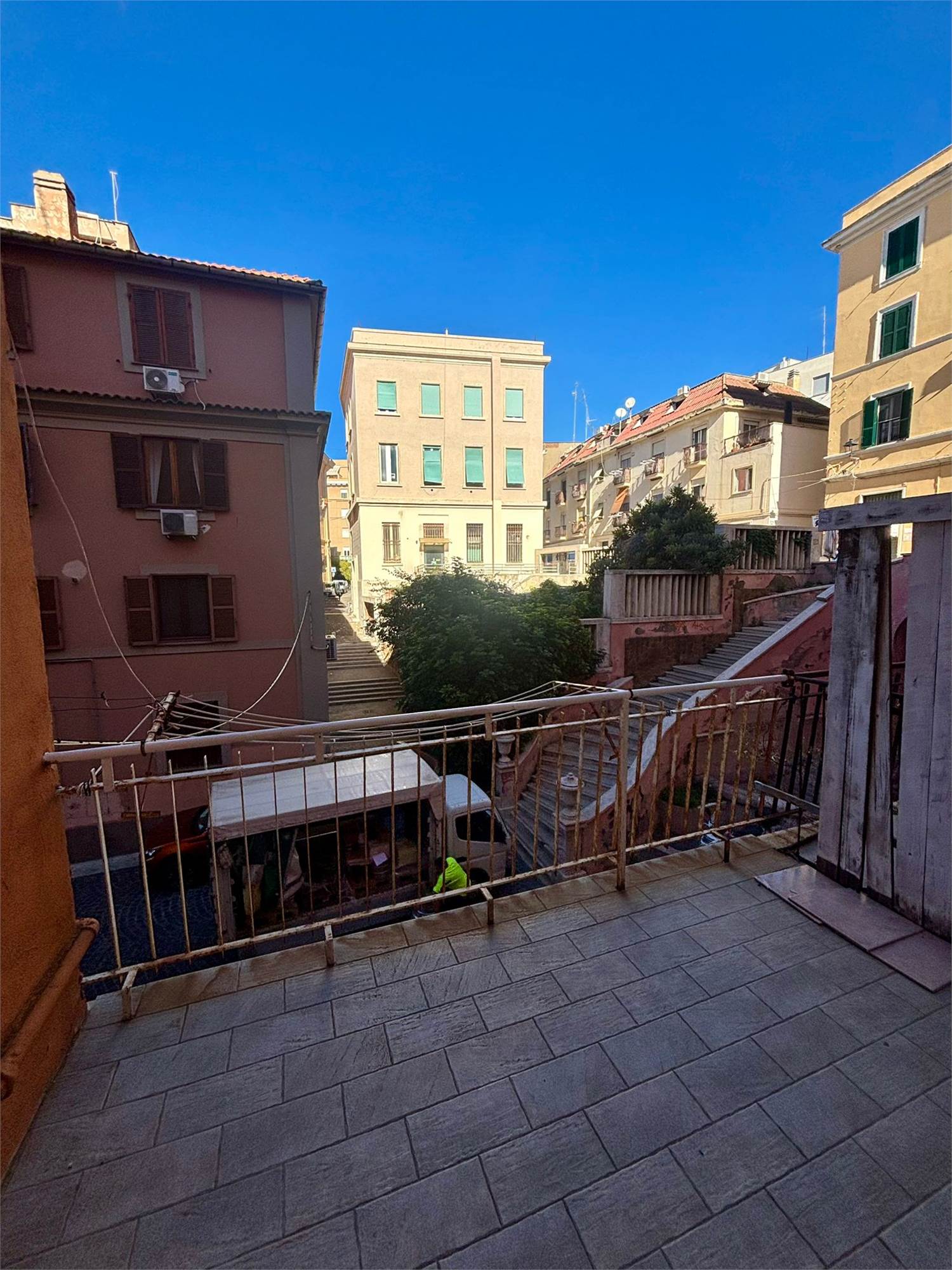 Dalla cucina si accede a un pratico terrazzo/stenditoio, uno spazio esterno in comune con l'abitazione confinante, ma fondamentale e raro in pieno centro per stendere e avere un piccolo sfogo all'aperto.