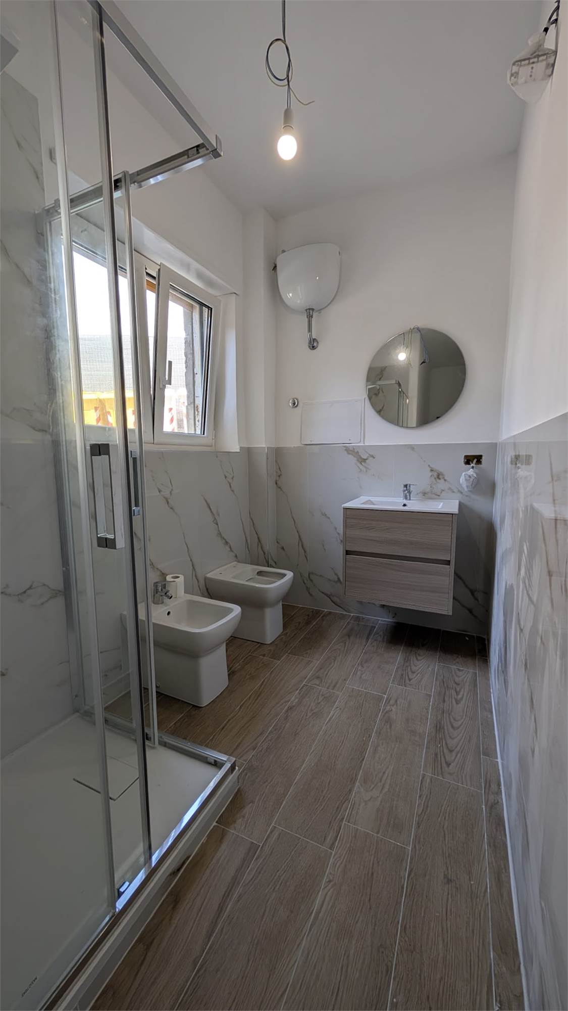 Un bagno completo dotato di finestra, un dettaglio fondamentale che assicura ventilazione naturale e ulteriore luminosità. Già fornito di mobile ,specchio e doccia con cabina e colonna attrezzata a più getti.