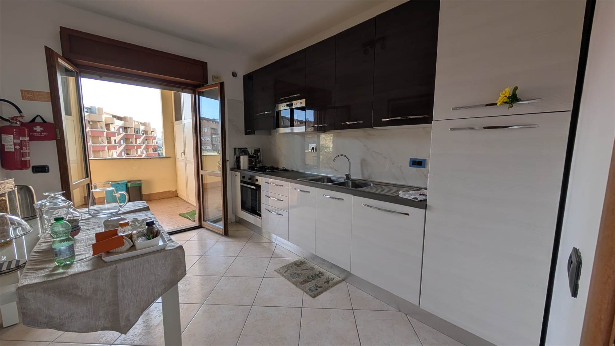Il vero cuore della casa è la grande vetrata che conduce allo splendido terrazzo di 75 mq, uno spazio esterno ideale per cene all’aperto. La cucina è abitabile e spaziosa, anch'essa con accesso diretto a un secondo terrazzo abitabile, perfetto per la gestione quotidiana e per godere di un ulteriore sfogo esterno riservato.